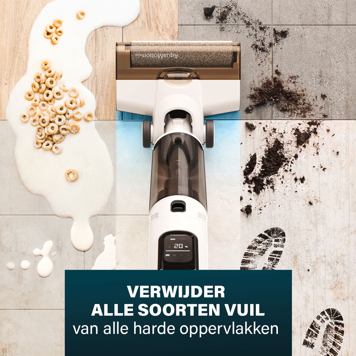 - Tijdbesparend: Combineer stofzuigen, dweilen en drogen in één handeling voor een sneller resultaat.